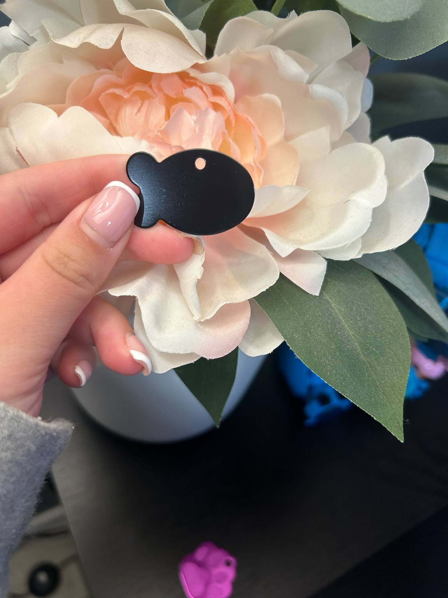Keep your pet stylish and identifiable with our Black Fish ID Tag. No more searching for your furry friend with this quirky, must-have accessory. (Makes a great conversation starter too!) Tag measures 1 inch in diameter and includes a durable and secure attachment ring.