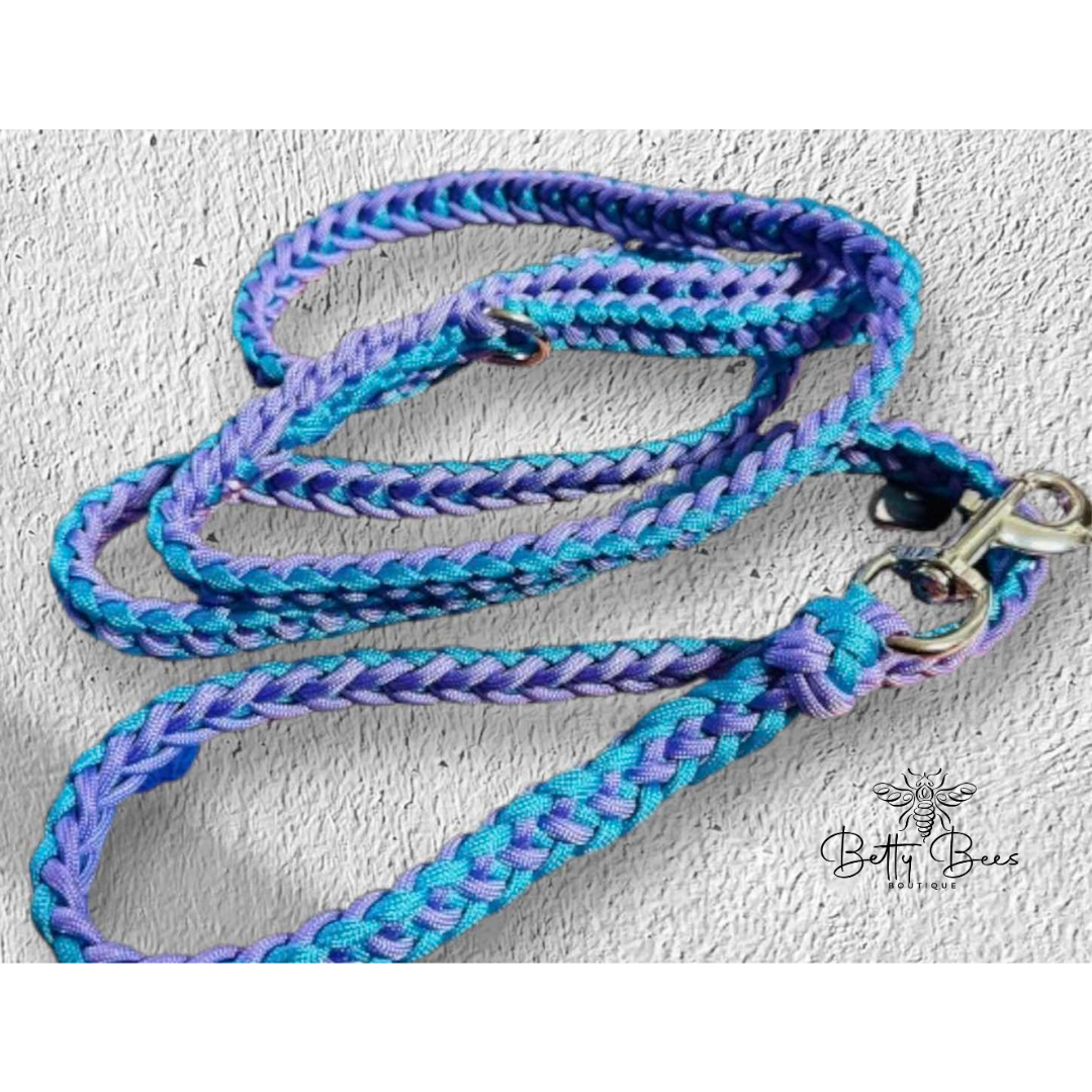 Crafted for style, strength, and comfort, our Handwoven Adventure Dog Leash is the perfect blend of beauty and functionality. Each leash is handmade with care using durable, high-quality paracord in vibrant color combinations like Purple & Aqua—designed to stand out on any adventure.